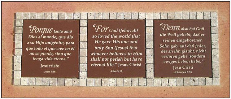 See the Scripture Tiles and Plaques that surround this path.”