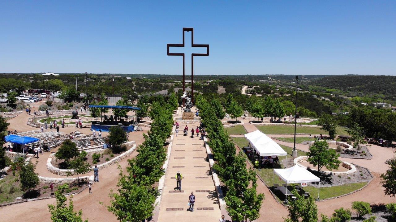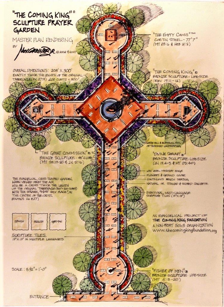 This is the 300′ cross-shaped garden path which leads visitors to the cross. This is a “Type” of Last Days Tabernacle. It includes the 77 Bible verses, in multiple languages (Inner Court) and inside the cross (Holy of Holies). This 7′ wide space, on a 10′ x 10′ footprint features the four “Prayer Plaques”. This is where most of the souls are Saved and miracles happen.