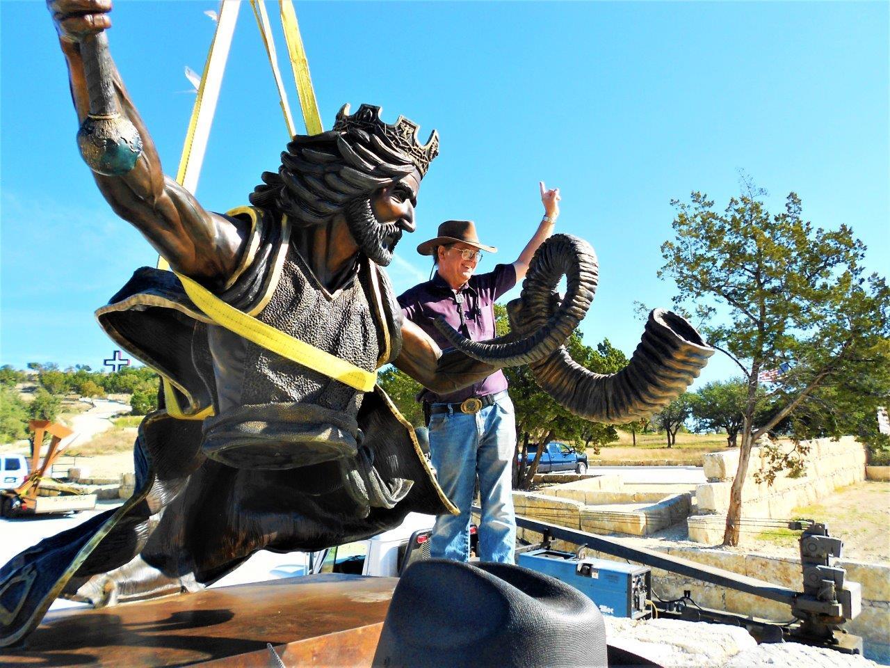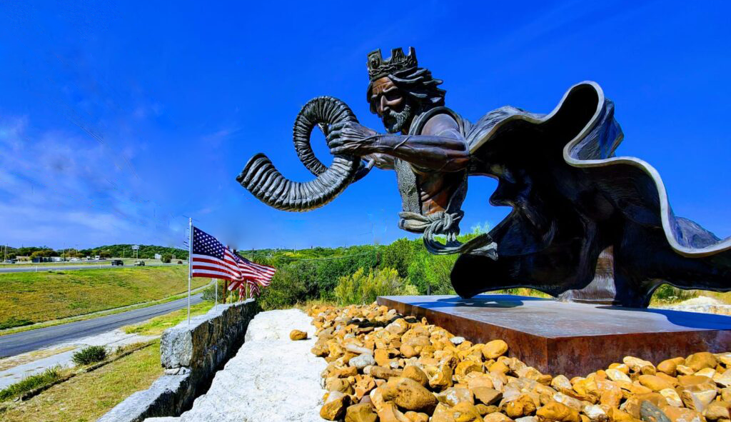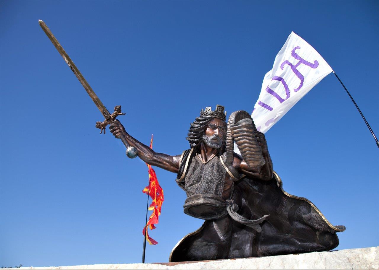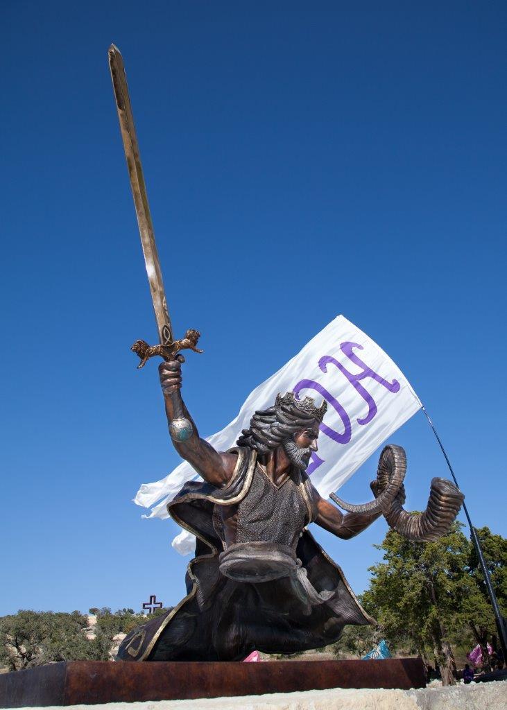 This sculpture depicts Jesus Christ returning in glory at the end of time, as a mighty warrior and king. Throughout the Old and New Testaments of the Bible, dozens of prophecies state that the Jewish Messiah will one day return to Jerusalem as a victorious warrior. Christians believe that Jesus Christ, who is the Lamb of God and the Messiah, will return to earth in power and majesty. However, this time He is coming as the Lion of the Tribe of Judah, the King of kings, and the Lord of lords.