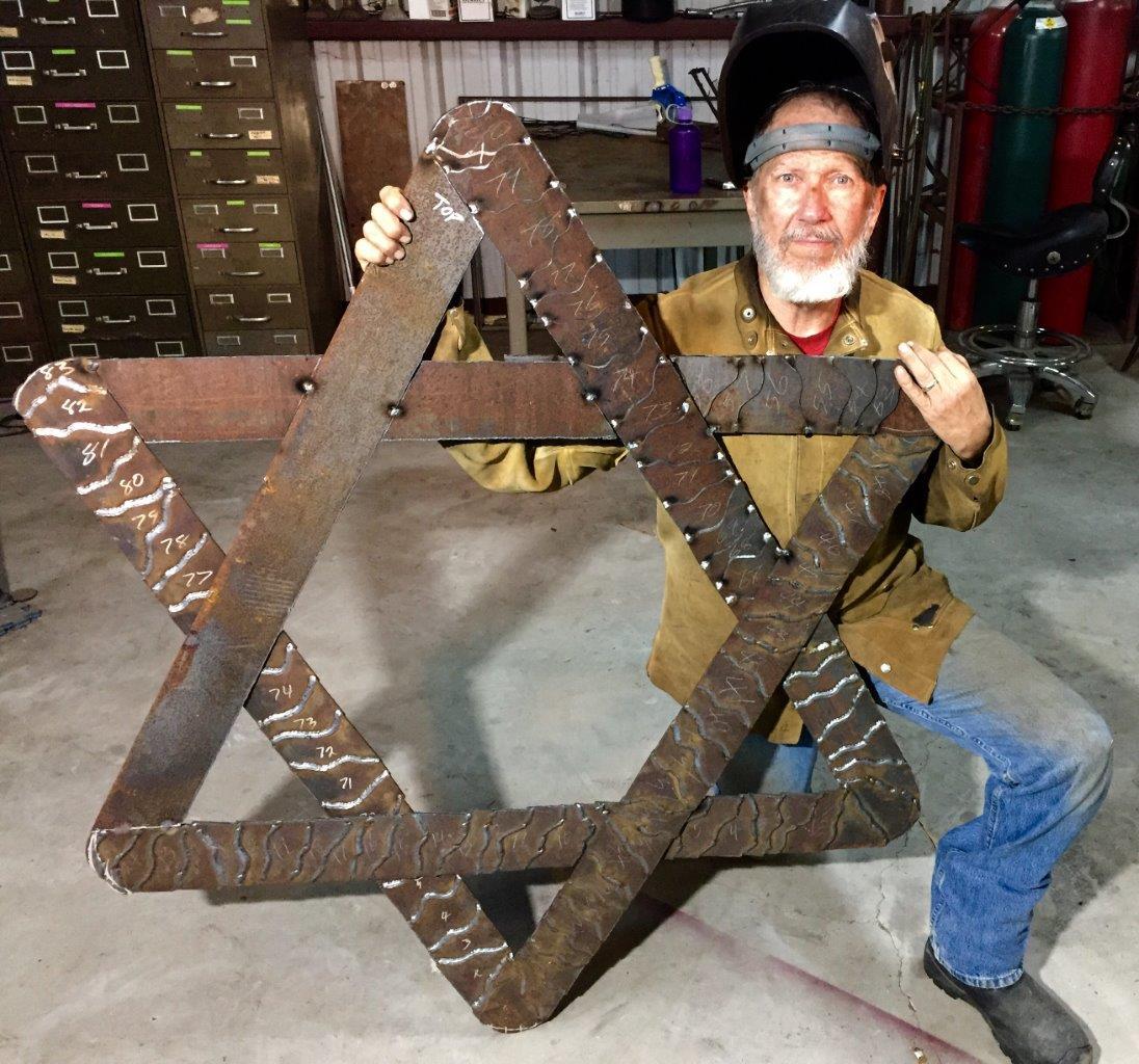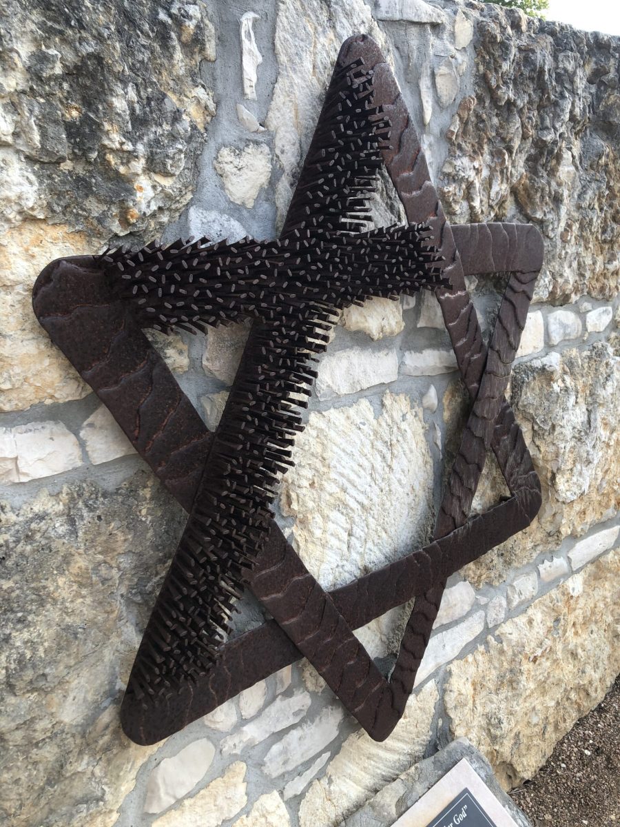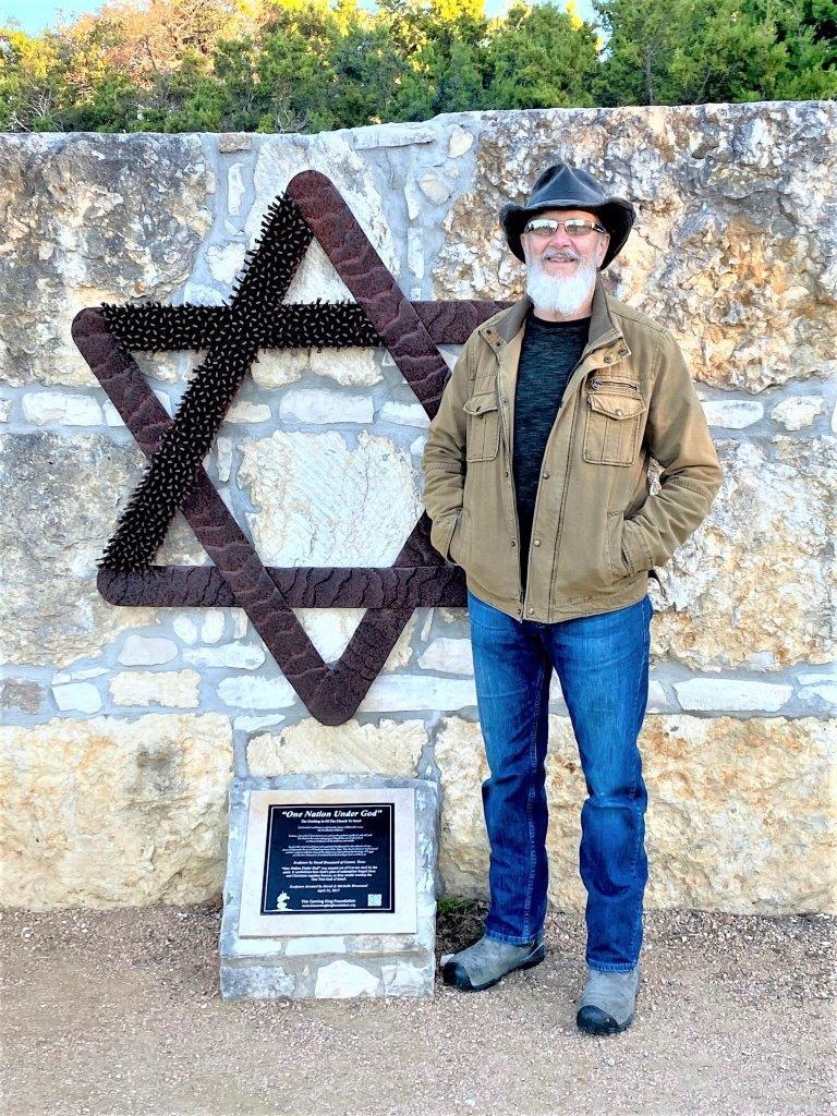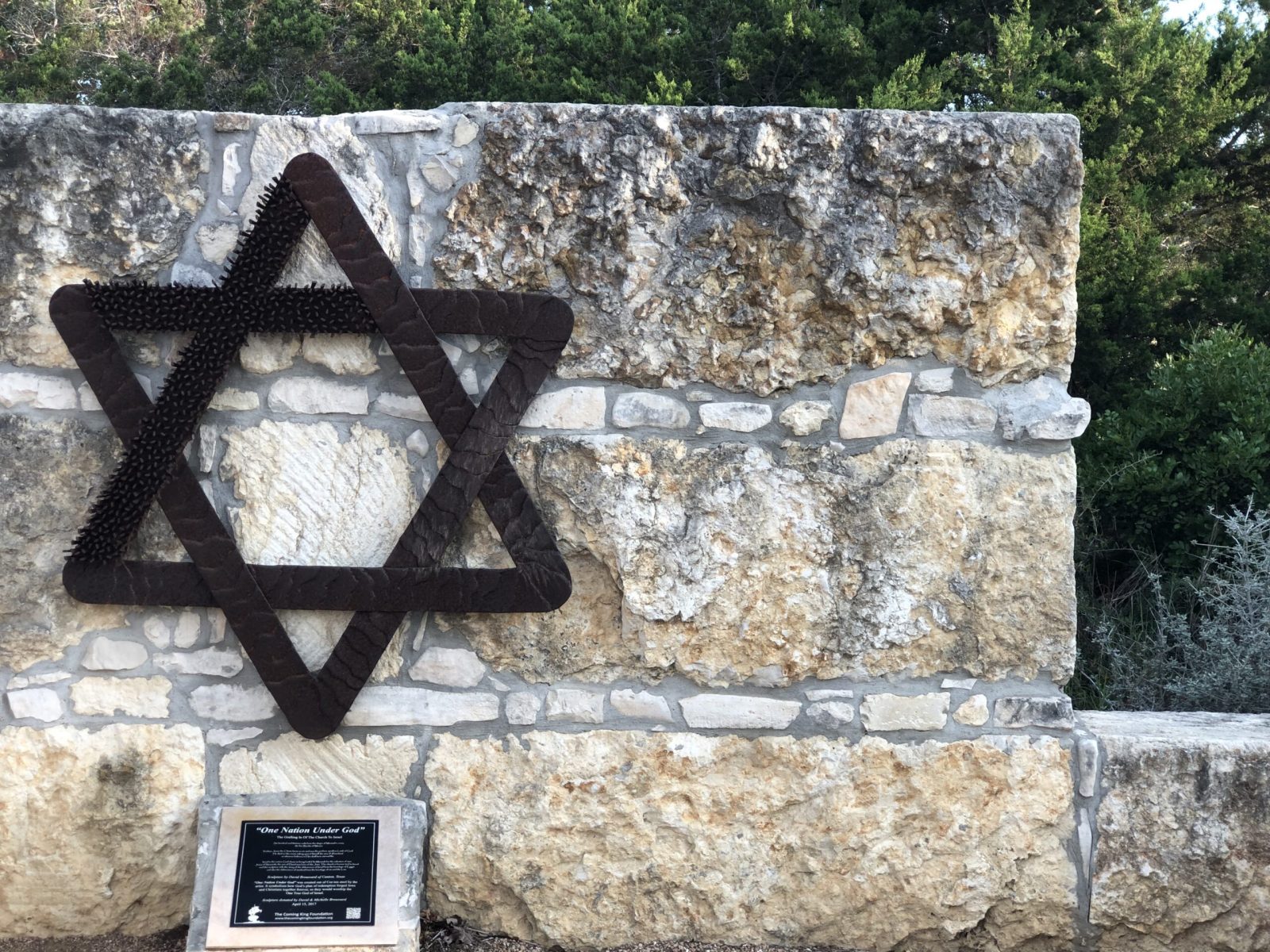 “One Nation Under God ™” was created out of Cor-ten steel by the artist. It symbolizes how God’s plan of redemption forged Jews and Christians together forever, so they would worship the One True God of Israel.
