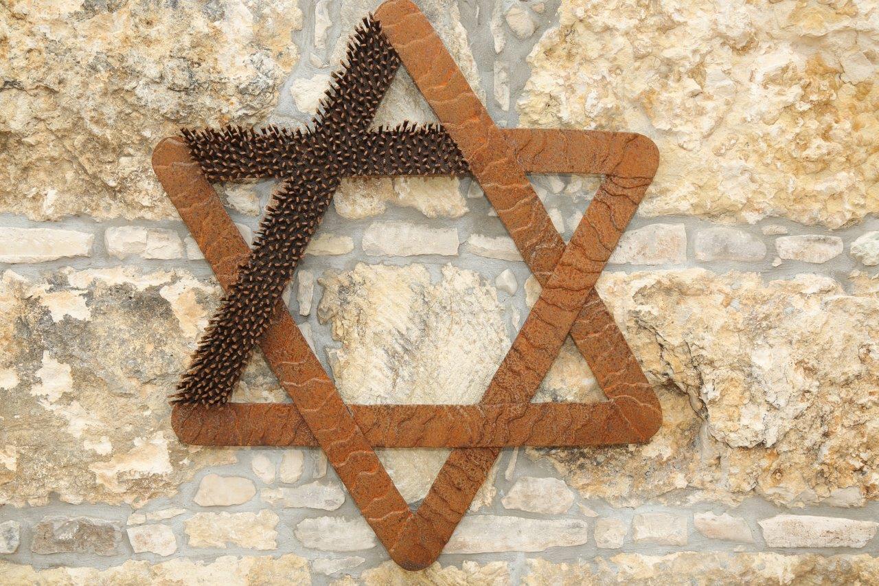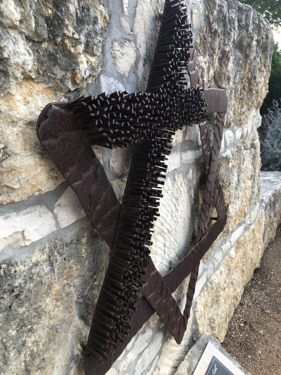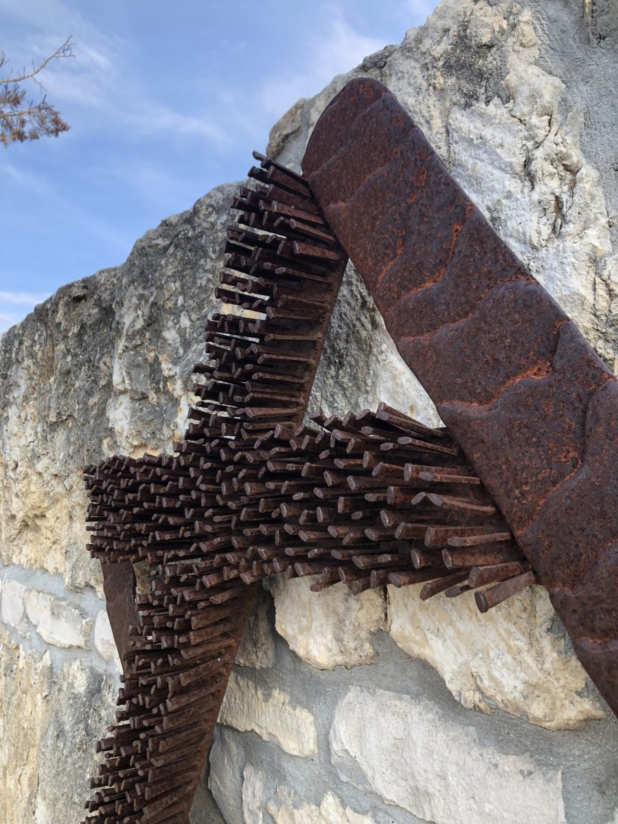 “One Nation Under God ™” was created out of Cor-ten steel by the artist. It symbolizes how God’s plan of redemption forged Jews and Christians together forever, so they would worship the One True God of Israel.