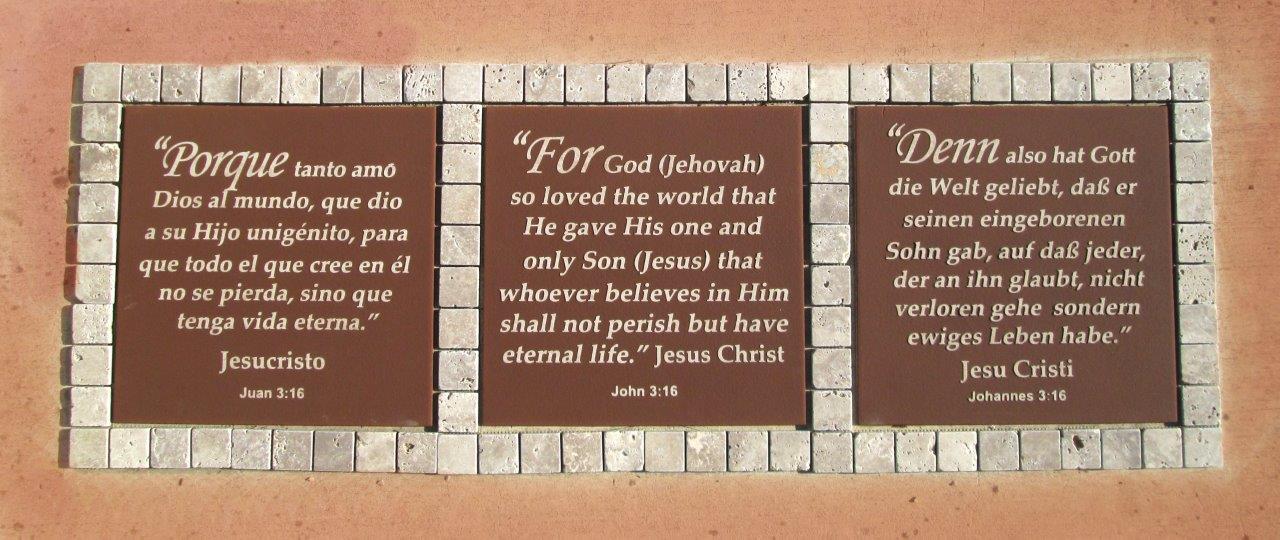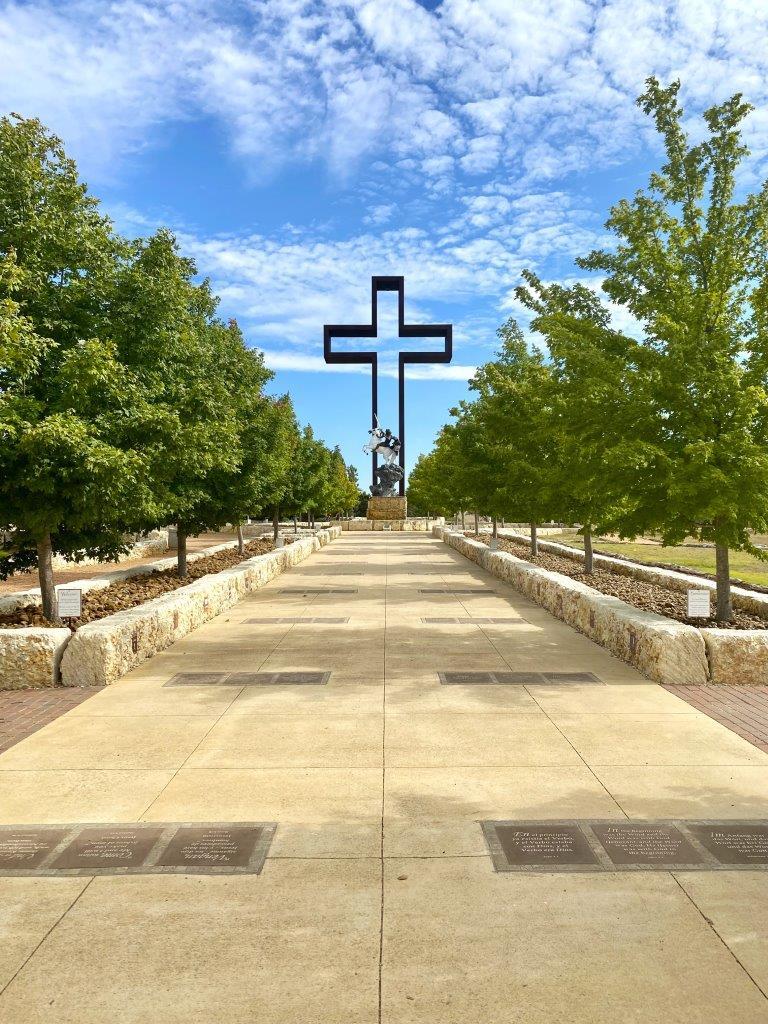 Every 12’, the “Scripture Tiles” present the Gospel message using both Old and New Testament Bible verses. English, Spanish and German are displayed in the Kerrville, cross-shaped, garden which has a massive, 77’7″ Cor-ten steel sculpture called “The Empty Cross” as its focal point. Believed to be the most symbolic cross sculpture in the world, the blood colored, reddish brown cross symbolizes the Resurrection, the Blood, the Strong Tower, the Mighty Fortress, the Narrow Gate, the Door, the Way and the Light of the World.