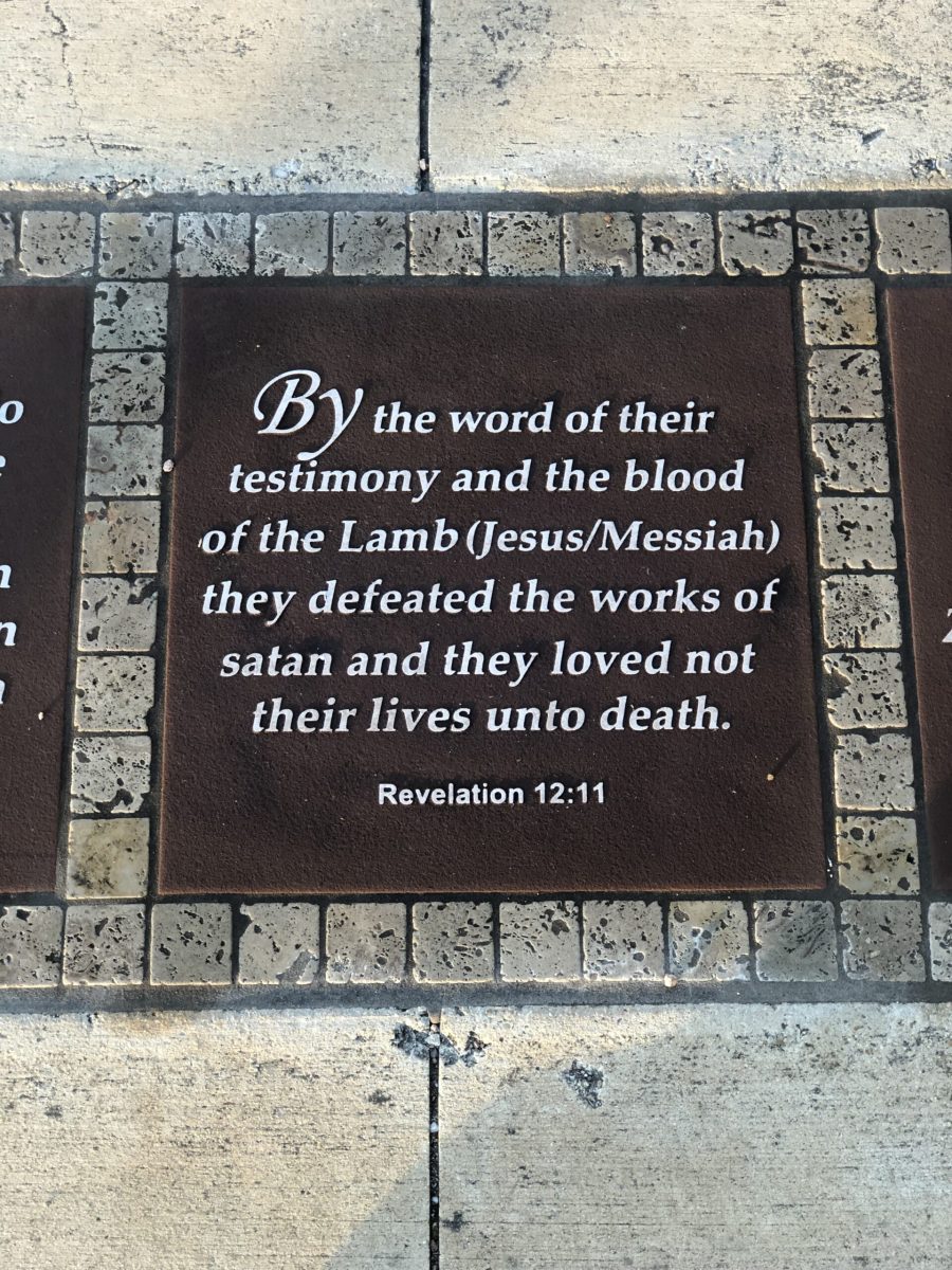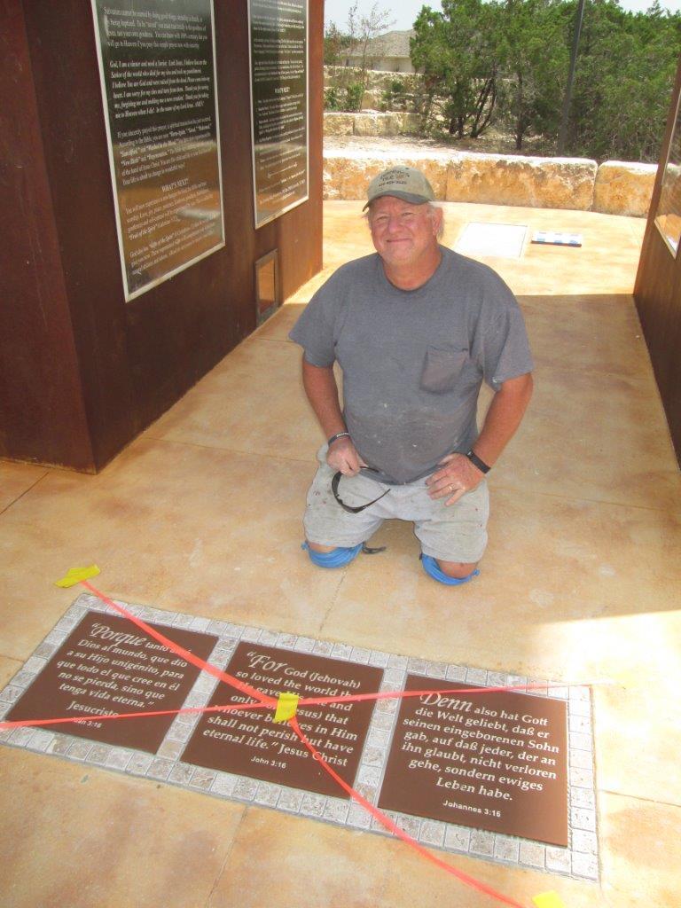The first 39 tiles lead directly to the 77’7” cross and prepare the visitor’s heart for an encounter with God. At the foot of the cross, John 3:16 is the Bible verse they see. Once inside the 7’ wide space of “The Empty Cross”, visitors encounter four large plaques, with four profound prayers. After exiting the massive cross, the remaining 38 scriptures share the basic concepts of Christian discipleship.