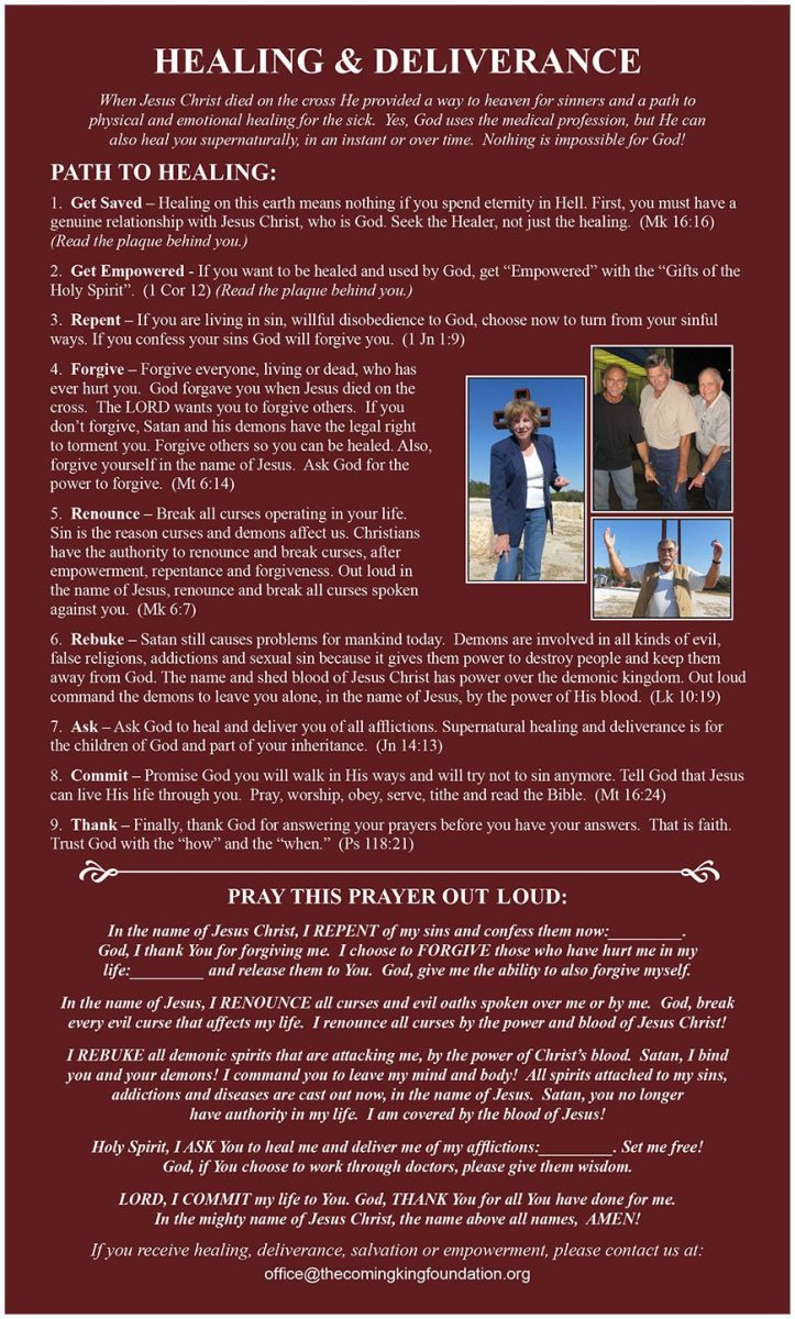 Deliverance often comes before Healing. Confessing and Repenting removes the sin which often block God’s ability to heal us.